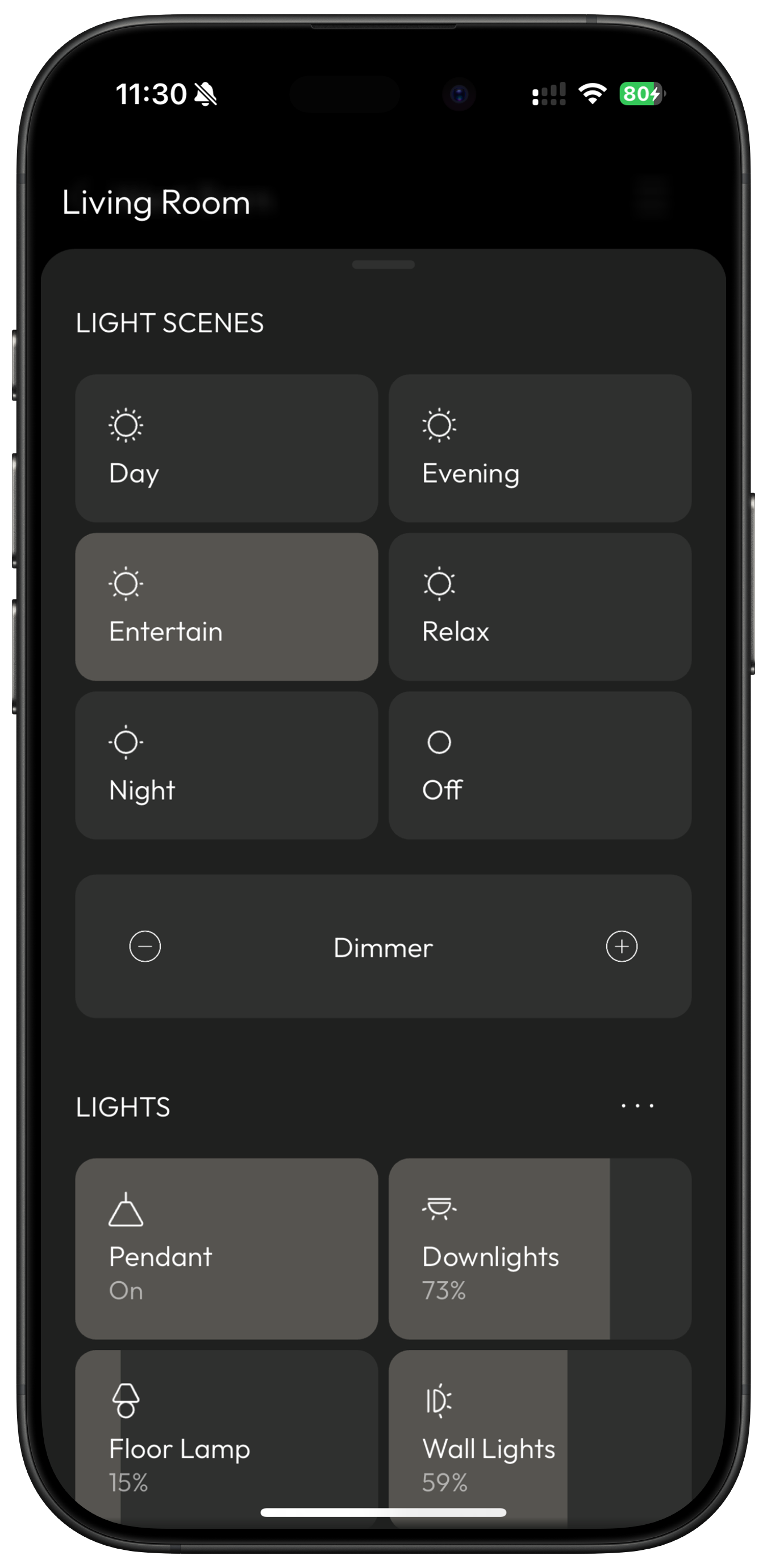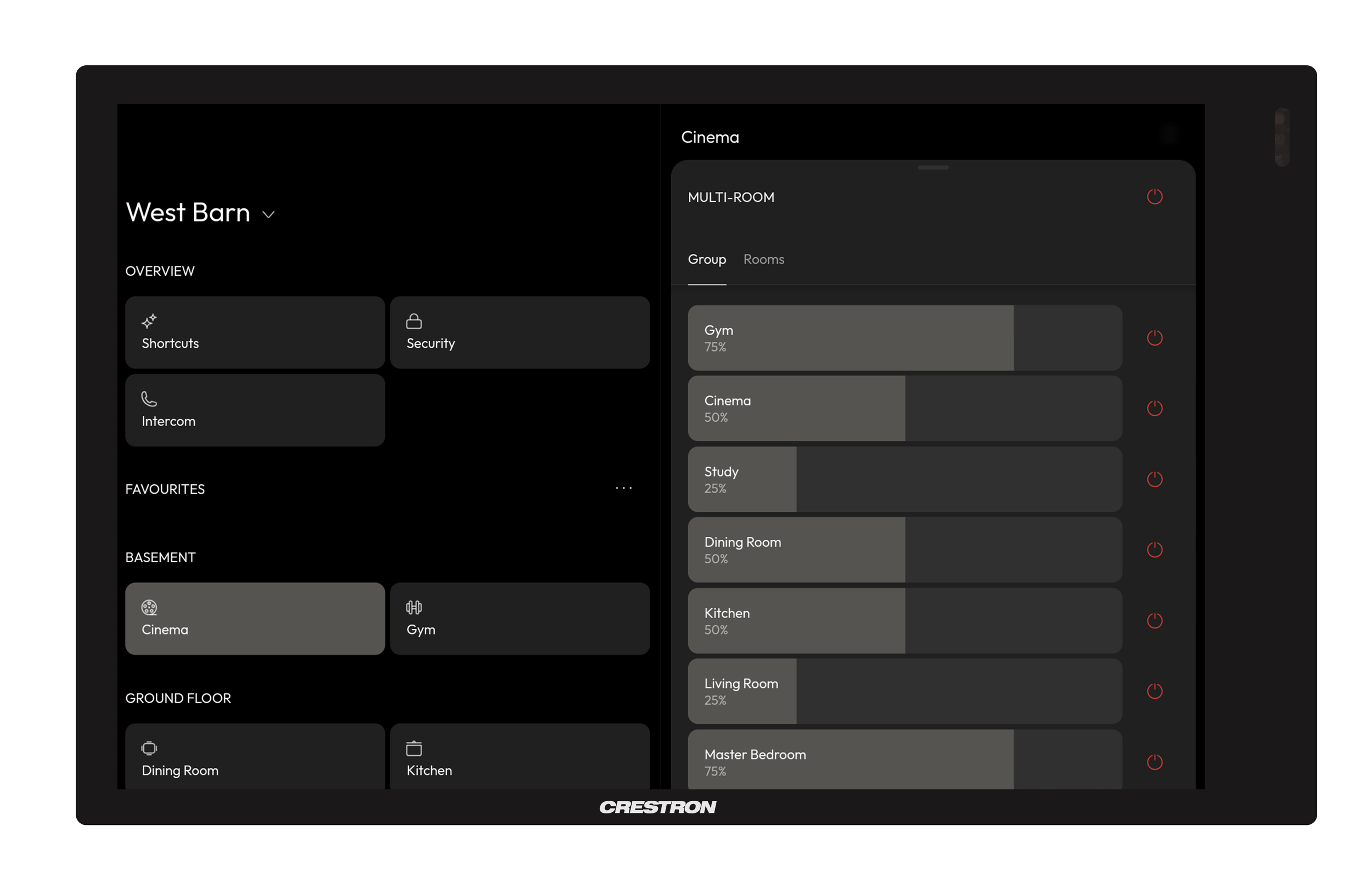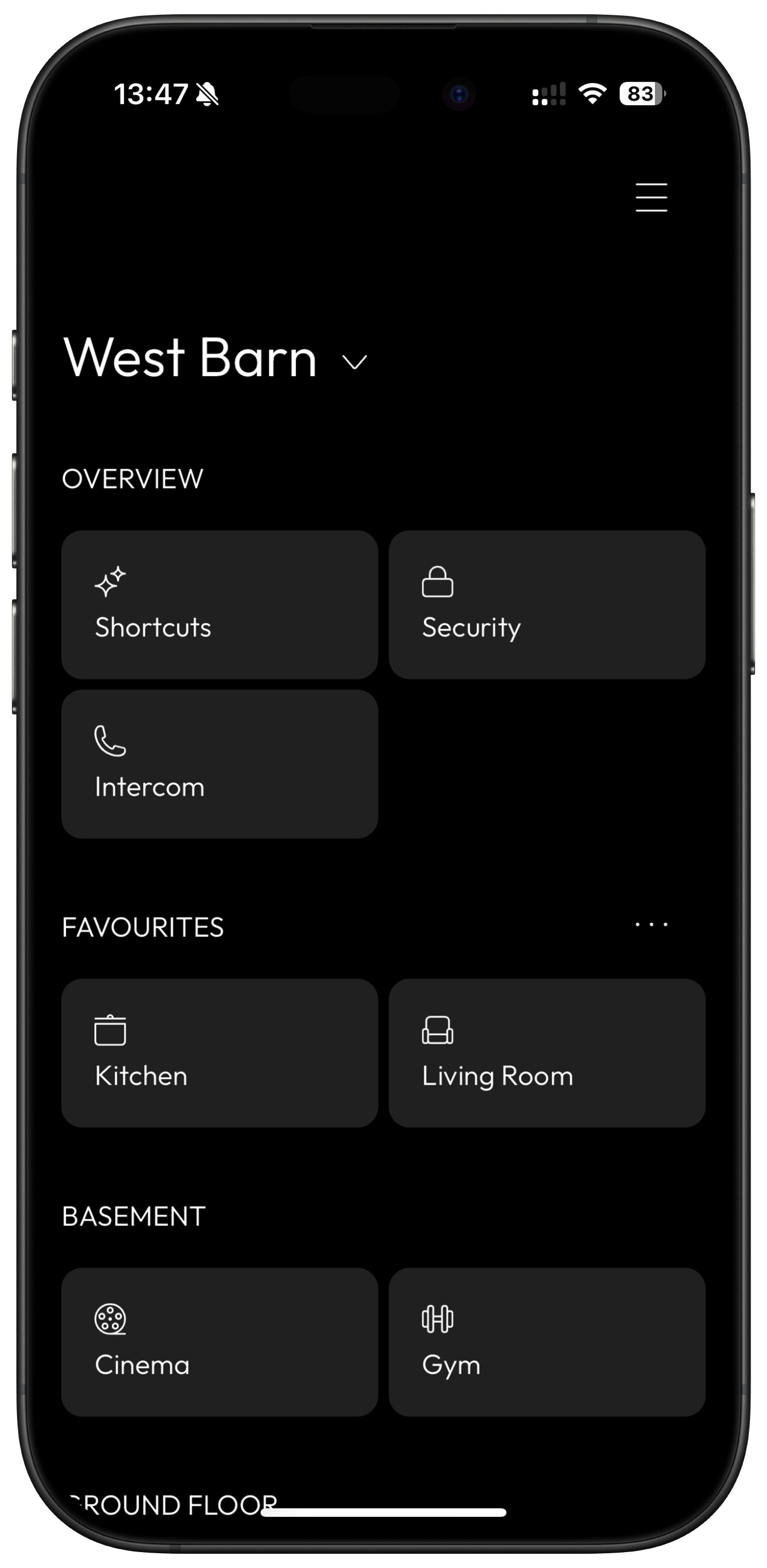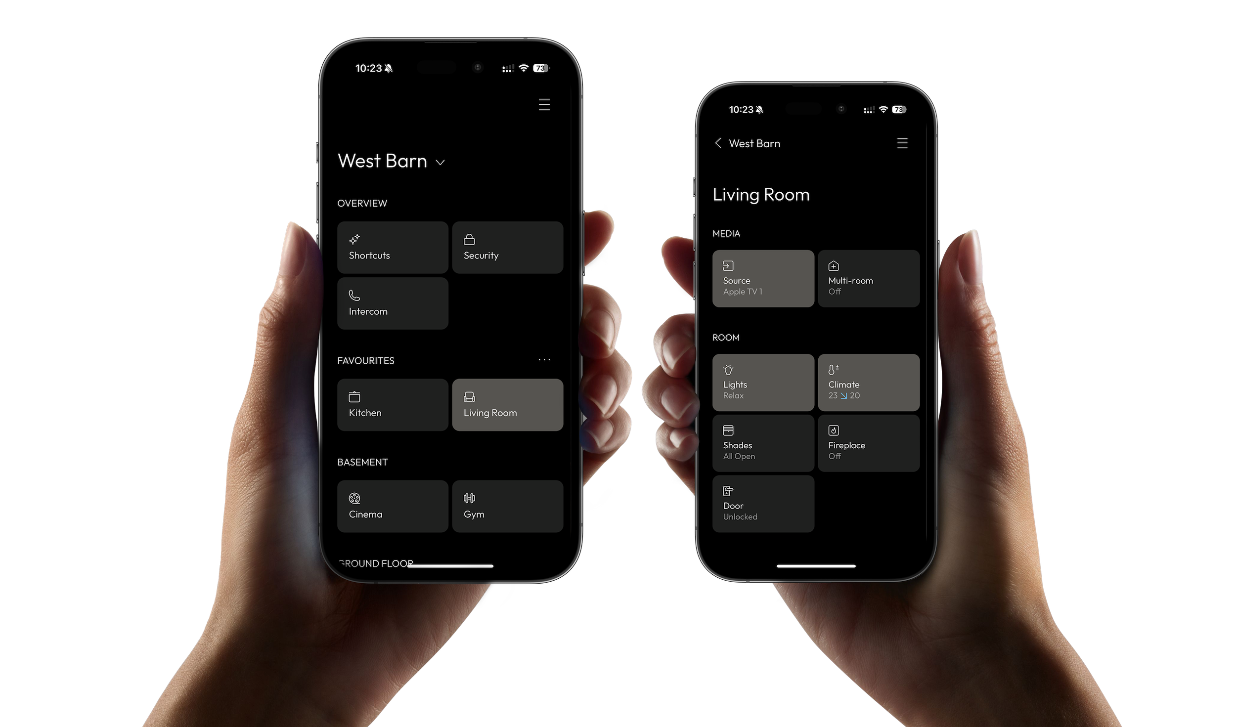 Manage multiple dwellings, all within a single app. Whether controlling a single room or an entire estate, ORO adapts to your needs. Configure the app for focused, dedicated room-specific control or manage every room with ease from the same device. Instantly access the rooms you use most. ORO lets you select and prioritise your favourite rooms for quick, intuitive navigation.