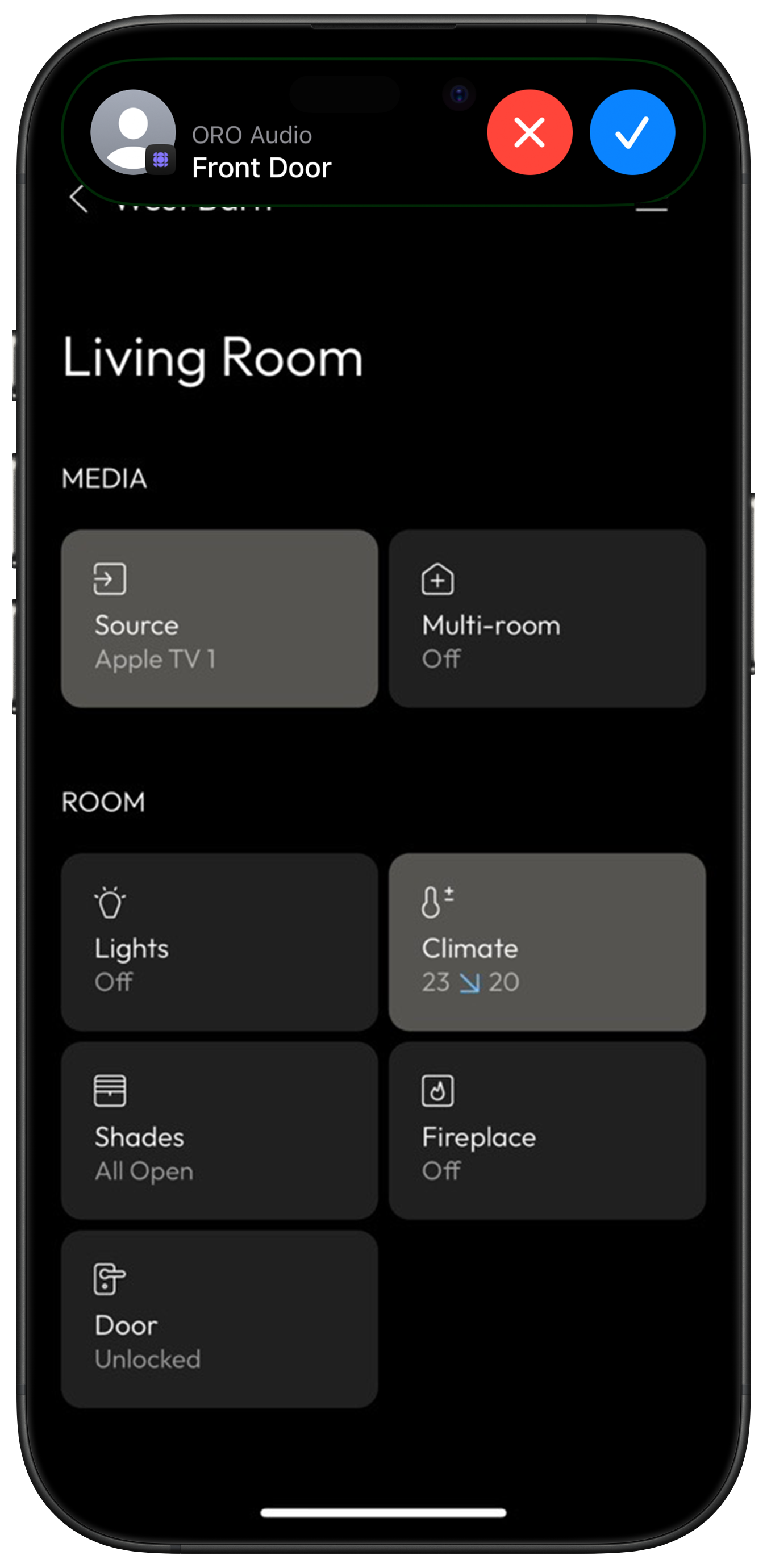 ORO app works where you need it: on iOS, Android, and on web devices. No matter if you use a smartphone, tablet, or browser, your system is always within reach. Beyond mobile devices, ORO app supports a range of dedicated hardware - including AVA remotes and Crestron TSW touchscreens, ensuring a flawless experience across your entire ecosystem.